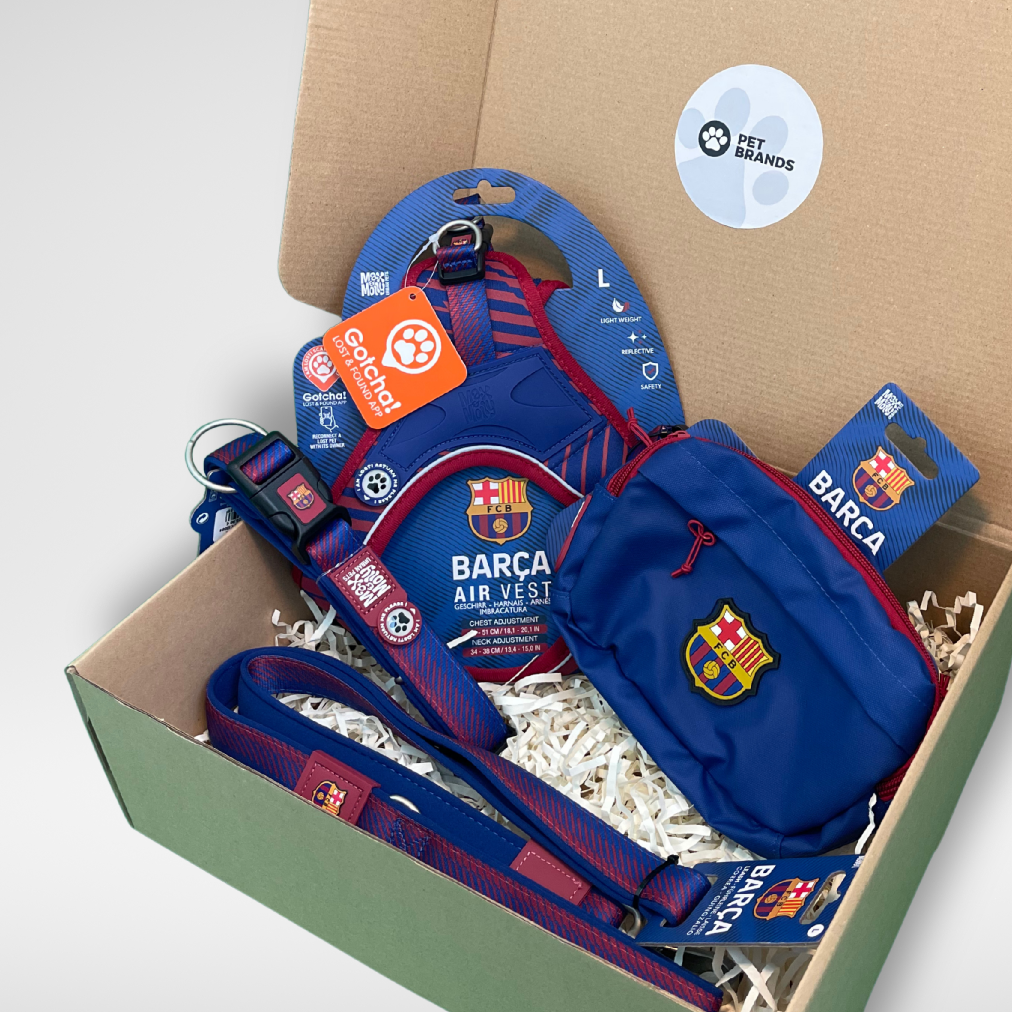 Esta colección de accesorios para mascotas FC Barcelona combina seguridad, funcionalidad y estilo deportivo, ideal para el uso diario. Incluye productos pensados para paseos cómodos y controlados, identificación inteligente, protección durante la actividad y accesorios prácticos para entrenamiento, priorizando siempre el confort y bienestar de tu mascota.
