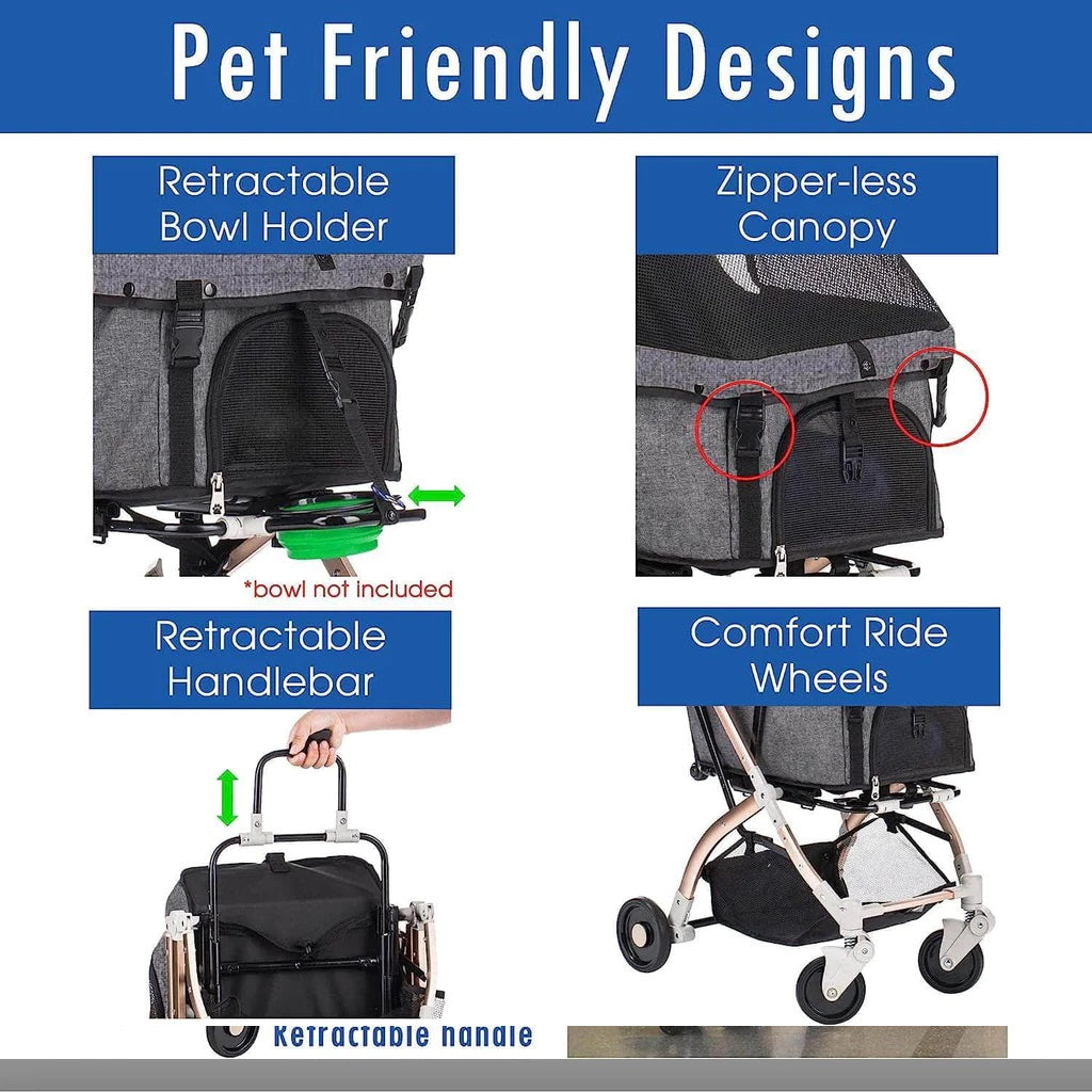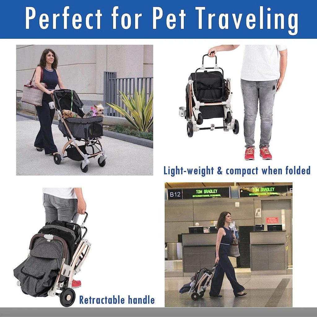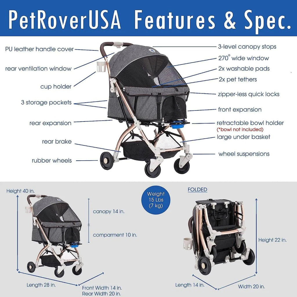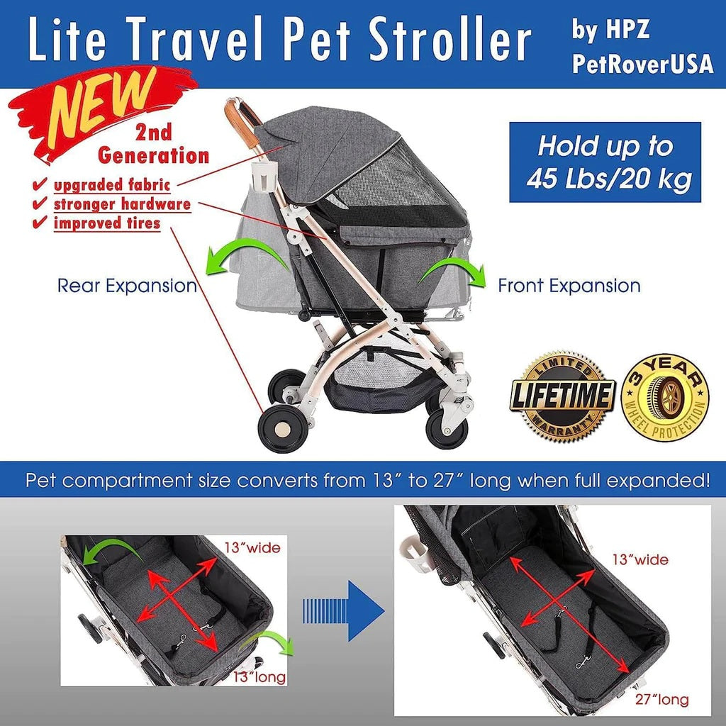 Coche para Mascotas hpz pet rover lite premium light travel stroller for small/medium dogs, cats and pets (Gray)