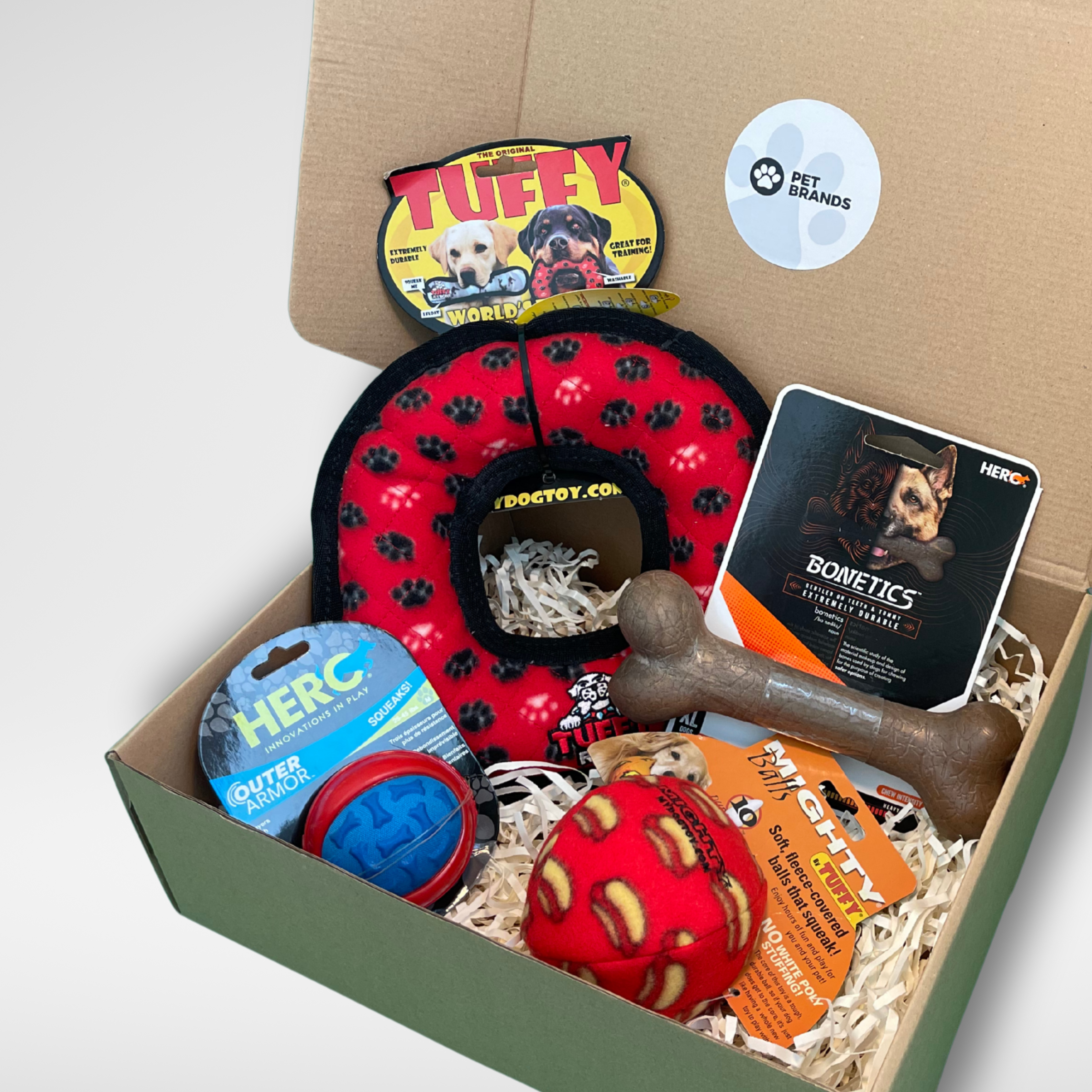 Esta selección de juguetes resistentes para perros está diseñada para ofrecer entretenimiento duradero, juego activo y estimulación, ideal para perros con mayor energía o mordida más fuerte. Incluye juguetes pensados para morder, lanzar y juegos interactivos, fabricados con materiales seguros y de alta resistencia para acompañar el juego diario.