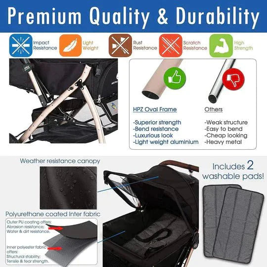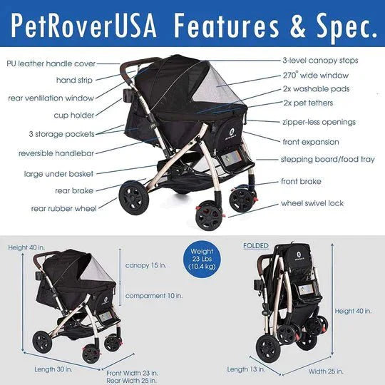 Coche para Mascotas hpztm pet rover xl extra-long premium stroller for small/medium/large dogs, cats and pets (Black)